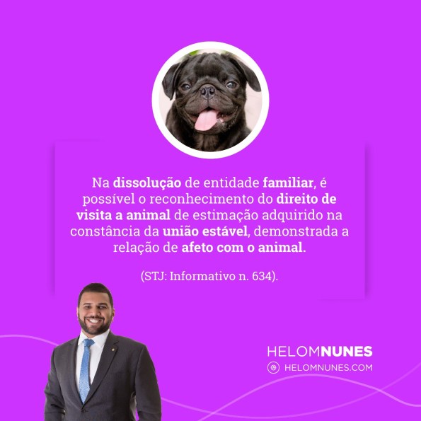 Vale lembrar que o IBDFAM possui o Enunciado n. 11, o qual afirma: Na ação destinada a dissolver o casamento ou a união estável, pode o juiz disciplinar a custódia compartilhada do animal de estimação do casal.