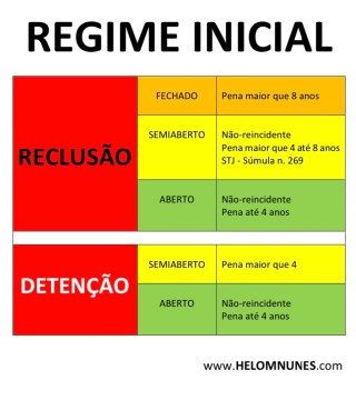 Quanto à espécie de pena, observa-se que a reclusão poderá começar tanto nos regimes fechado, semiaberto e aberto, enquanto que as penas de detenção somente iniciarão nos regimes semiaberto e aberto.