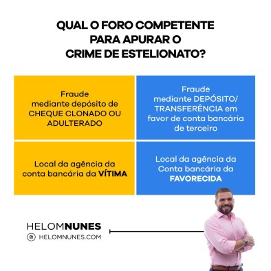 OLHA SÓ! Mais que decorar essas regras, é indispensável lembrar quando o crime de estelionato se consuma (obtenção da vantagem indevida) e a regra geral da competência territorial escolhida pelo artigo 70 do Código de Processo Penal (teoria do resultado – local da consumação). Compreender a razão das decisões torna o estudo muito mais fácil.
