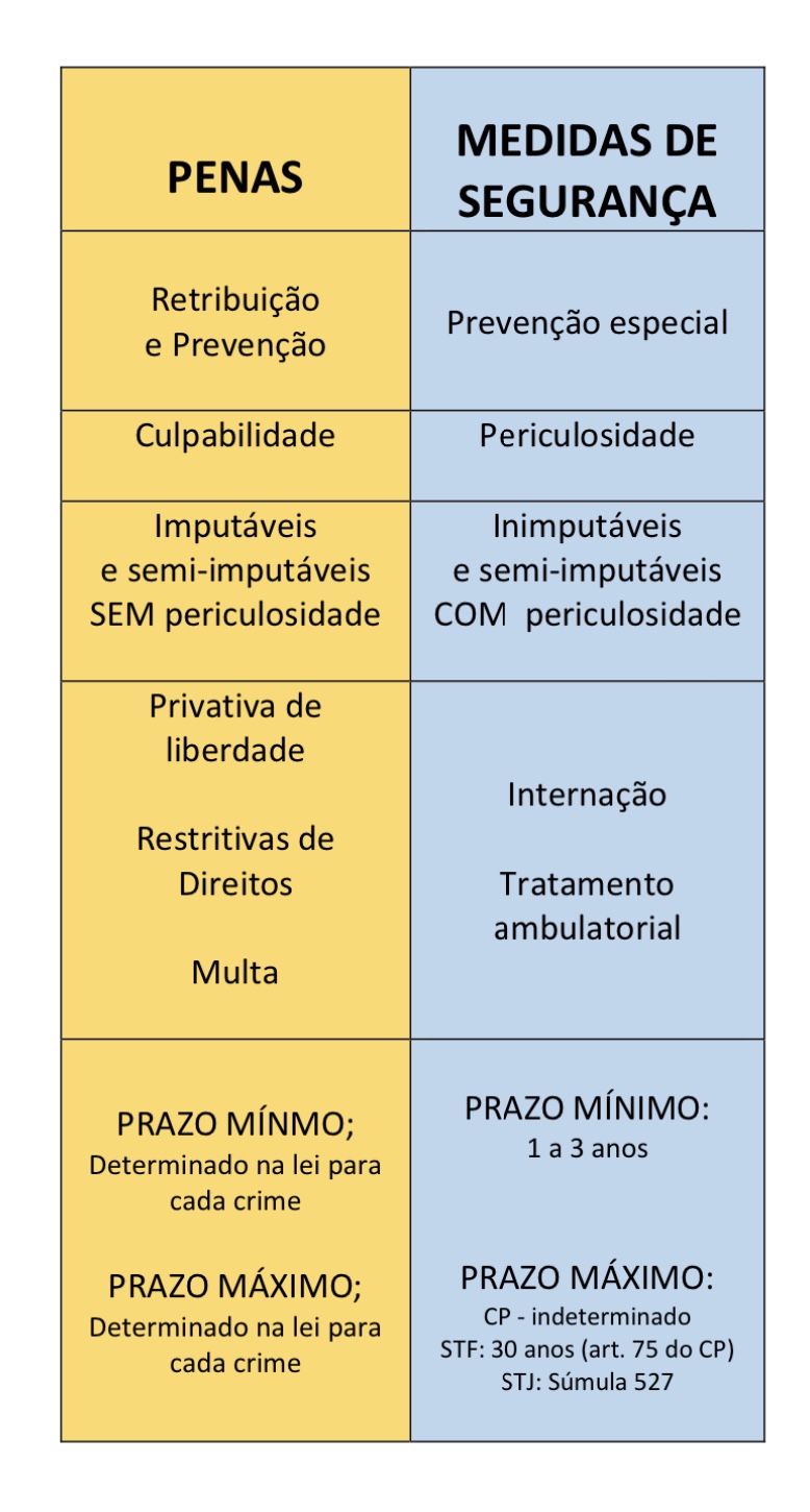Embora a pena seja a resposta jurídica do Estado mais conhecida, é necessário lembrar que nosso ordenamento jurídico prevê uma outra espécie de sanção: A medida de segurança.
