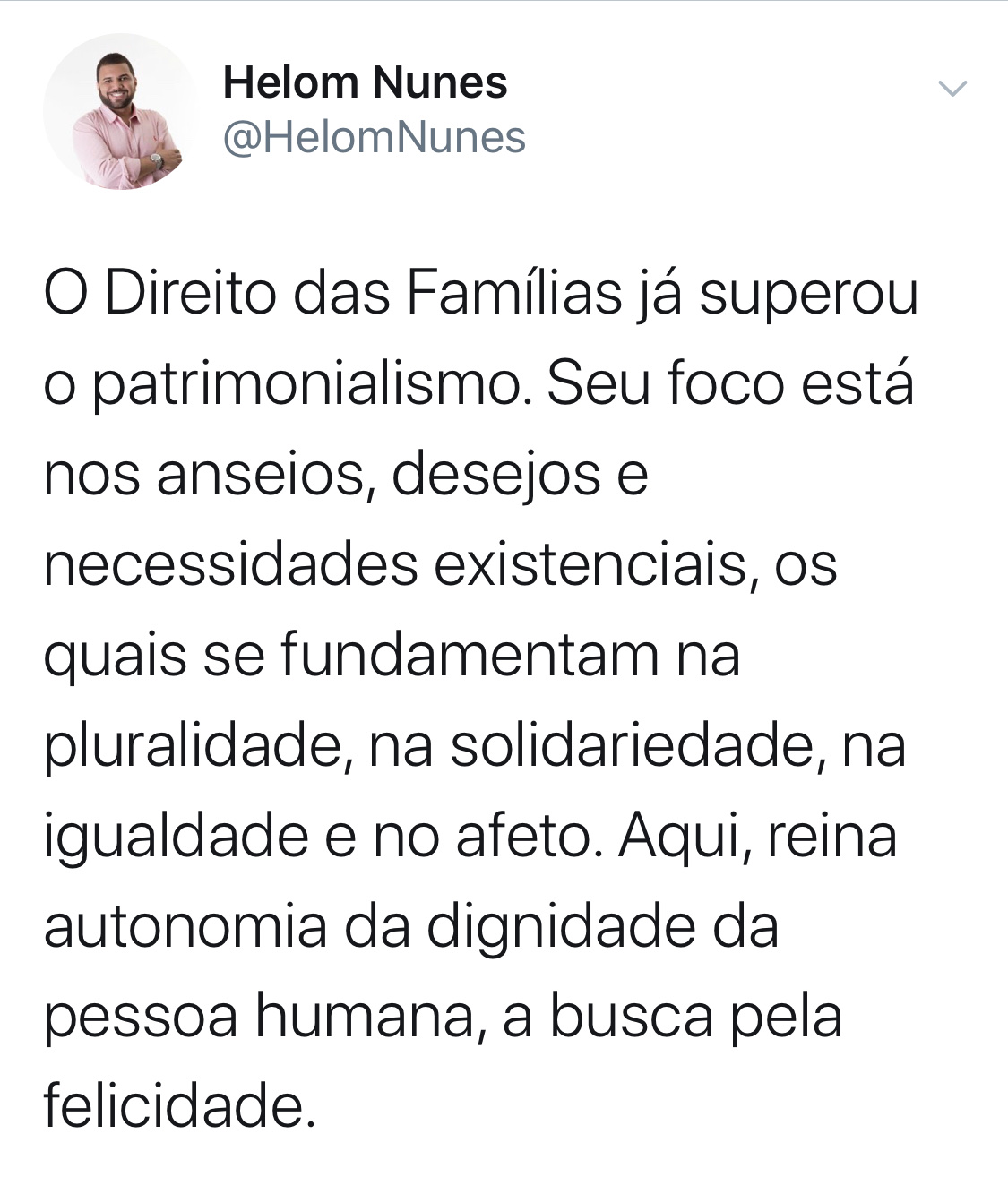 O Direito das Familias não é feito para gostarmos ou desgostarmos, concordamos ou discordarmos. Até porque, o Direito das Familias não é uma questão de escolha, mas de ser escolhido por ele.